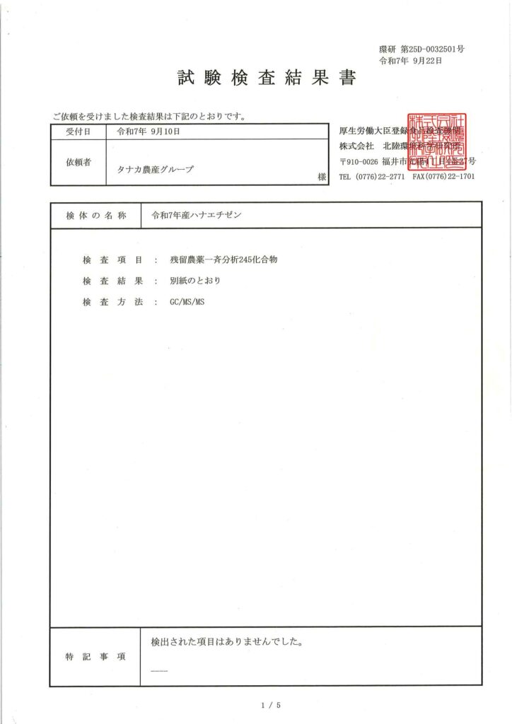 もちろん毎年残留農薬全245成分不検出・放射能もすべて不検出となっております。